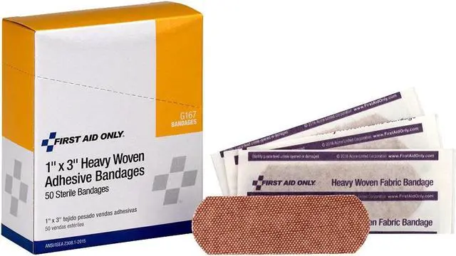 Ideal for covering minor cuts, abrasions and puncture wounds, these bandages wrap comfortably, stretching when you stretch. Nonstick, sterile pad protects you, while the strong adhesive holds the bandage firmly in place. Heavy fabric allows wounds to breathe while repelling dirt and water. Latex-free. Strip. Bandages Type: Strip; Material(s): Flexible Fabric; Mounting: With Adhesive; Length: 1".