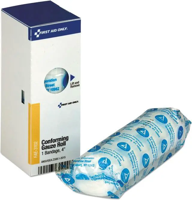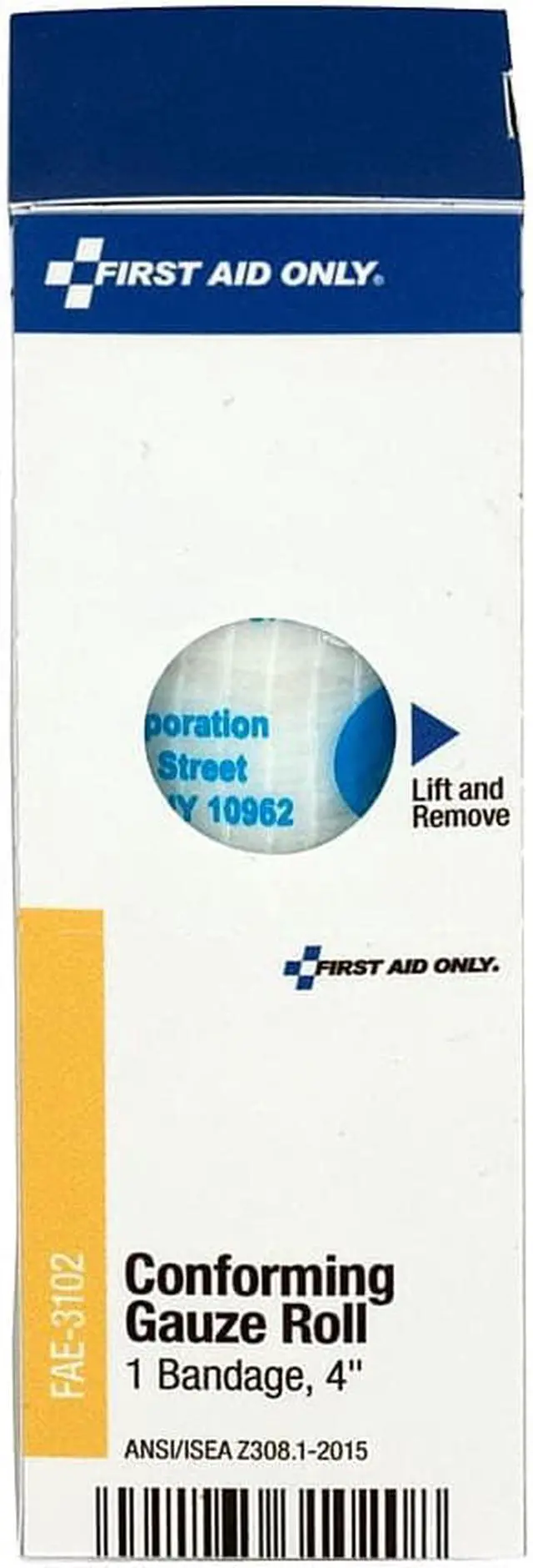 The SmartCompliance refill system for reordering and restocking your First Aid cabinet revolutionizes replenishment. It is quick, easy, and cost effective. As supplies are used, SmartTab ezRefill reminder tabs notify you when it is time to reorder supplies and puts the reorder information at your fingertips. The SmartCompliance Insert Maps also allow you to customize your cabinet to meet your specific first aid needs. SmartCompliance Refill with 1, 4" x 5 yd conforming gauze roll per box. Hold dressings in place with conforming gauze that won't cling to hair or skin. Soft and absorbent, the gauze can hold dressing on wounds, yet provide flexibility for movement if needed. Each roll contains approximately 5 yards of conforming gauze and the 4" width helps cover wounds quickly. This refill is used in First Aid Only SmartCompliance cabinets: 90732, 90829, 90830, 90831, 90832, 90833, 90834 and 90835.