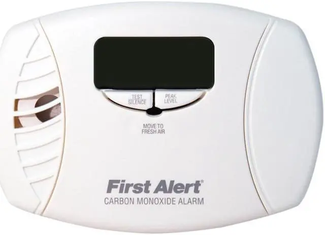 First Alert Easy To Read Digital Display Carbon Monoxide Alarm - Plug-in CO (carbon monoxide) alarm featuring battery back-up and backlit digital display. Uses an electrochemical carbon monoxide sensor, the most accurate CO detection technology available, to detect the CO you can't see, smell, or taste in the air. Easy-to-read backlit digital display allows a quick view of current and peak CO levels. Plugs into any wall outlet and includes a battery back-up for detection even during power outages. EZ access battery door allows you to change batteries without having to dismount the alarm. Battery life varies according to use and application. An 85-decibel horn sounds if carbon monoxide levels are too high, and a test/silence button silences the alarm and allows you to test its functionality. Meets UL2034 standards. - Type: Plug-In, Voltage: 120V, Battery Life: Varies According To Battery Life, Sensor Type: Electrochemical, Dimensions: 5 In. W. x 1-7/10 In. H. x 3-2/5 In. L., Battery Back-Up: Yes, Alarm Type: Carbon Monoxide, Decibel Level: 85dB, Battery Type: AA Battery, Batteries Included: Yes, Color: White, UL Listed: Yes, Warranty: 7-Year Limited, Pkg Qty: 1, Package Type: Clamshell