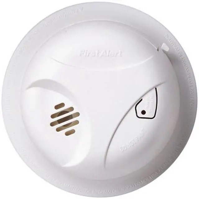First Alert Smoke Alarm With Hush - Battery powered smoke alarm with mute feature silences nuisance alarms from cooking smoke or shower steam. Single button also tests alarm functions. Easy access front loading battery door. No need to remove alarm from ceiling to change battery. Battery life varies according to use and application. Ideal for hallways, bedrooms and living areas. 10-year limited warranty. Meets UL (Underwriter's Laboratories) standards. - Type: Battery Operated, Voltage: 9V, Battery Life: Varies According To Application, Sensor Type: Ionization, Dimensions: 5.4 In. W. 1.9 In. H. x 5.4 In. L., Battery Back-up: Battery Only, Alarm Type: Smoke, Decibel Level: 85dB, Battery Type: 9V Battery, Batteries Included: Yes, Color: White, UL Listed: Yes, Warranty: 10-Year Limited, Pkg Qty: 1, Package Type: Clamshell This item is banned in the following states: CA,MA,MD,NY,OR,VT