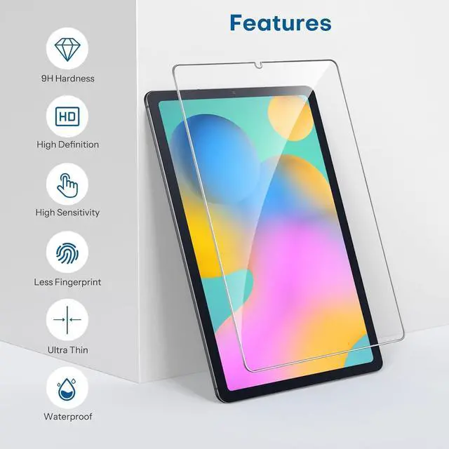 Glass: Made of the 9H hardness premium tempered glass for Galaxy Tab S6 Lite providing a maximum protection for the screen from unwanted scuffs or scratchesUltra-thin: Only 0.33 mm thickness and 99.99 % transparency screen protector maintains the original touching sensitivity and could highly compatible with