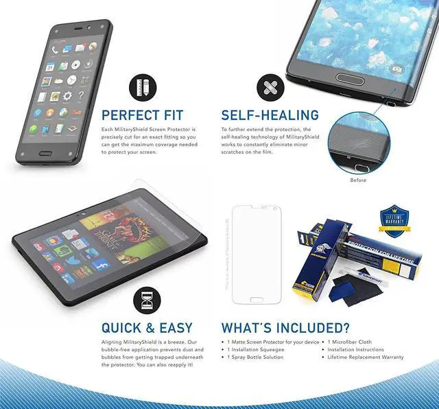 Includes: ArmorSuit MilitaryShield clear full body skin film + screen protector solution spray squeegee microfiber cloth installation instructions and Lifetime Replacement. Product made in the USA