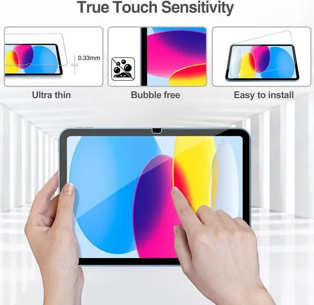 2025 (model: A3354 A3355 A3356)/ 10.9 10 Gen 2022 (A2696 / A2757 / A2777); Please verify the model number at the back of your iPad before purchase9H hardness surface with Super HD transparencyUltra thin ( 0.33 mm thickness); True touch sensitivity; Rounded edge integrationOnly take seconds to install; Advanced silicone adhesive no residue when removingFace ID & Pencil Compatible. Scratch-resistant; Shock-resistant; Oil-resistant