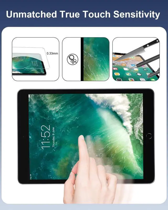 Protection: Crafted from premium tempered glass this screen protector offers exceptional scratch resistance and shock absorption safeguarding your iPad 9.7 inch 6th gen display against drops impacts and daily wear and tearSmooth