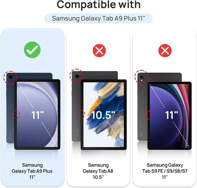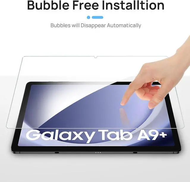 [Compatible Model] Screen protector tempered glass for Galaxy Tab A9 Plus/A9+ 11 inch 2023 (Model: SM-X210 / SM-X216/ SM-X218) Not fit for other models. [9H Hardness] 9H hardness tempered glass screen protector is 3 times stronger than other film offers Maximum protection your tablet from high impact drops and accidental scratch. [High Definition] 99.9 % high light transmittance keep the natural viewing experience oleo-phobic coating layer offers Fingerprint proof and dirt-proof. [High Sensitivity] Only 0.3 mm thickness full compatible with 3D Touch faster responding and the original touch feeling. [Easy Installation] Bubble-free by installation kit Clean the screen and press the screen tempered film the small bubbles left will disappear automatically.