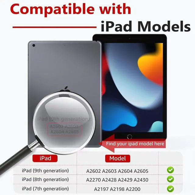 Fit models: A2602 / A2603 / A2604 / A2605 / A2270 / A2428 / A2429 / A2430 / A2197 / A2198 / A2200. Please check back bottom of your device to find the model numberAttention: This is not compatible with iPad 6th generation (2018) iPad 5th generation (2017) iPad Air/iPad Air 2 iPad Air 3 2019 and iPad Pro 10.5 2017Innovative