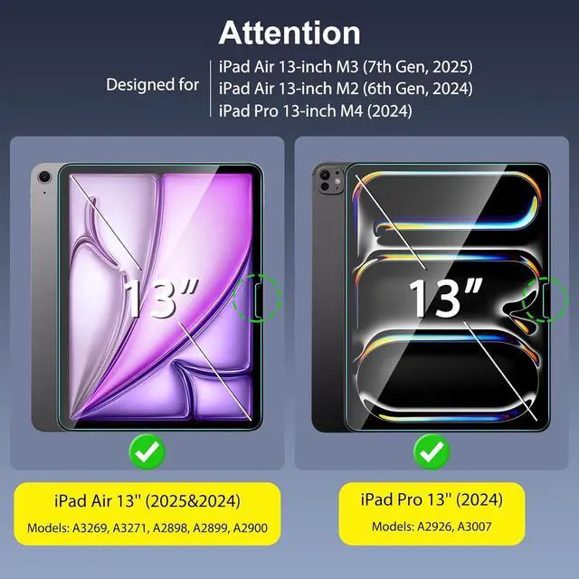 Compatibility: Fit for iPad Air 13 Inch M3 2025 & M2 2024 (7th/6th Generation) & iPad Pro 7th Generation (13 inch M4 2024) Not for iPad air 11 inch/iPad Pro 11 inchSupport