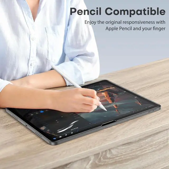 Pencil: The ultra-thin screen protector with a thickness of only 0.33 mm is able to maintain the original touching sensitivity highly compatible with Pencil. Our Tempered glass does not affect the writing and drawing functionsPrecise