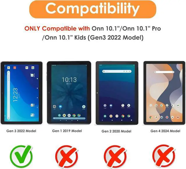 ?? 2 PCS Screen Protector- Only Compatible with Onn 10.1 /Onn Tablet Pro 10.1 (Gen3 2022 Model) NOT for any other models please comfirm your device model before order! **[Not Compatible with Onn 10.1 Gen2 2020 / Onn 10.1 Gen1 2019. ]**?? Anti-Scatter Pre- More care with reliable design of anti-shatter. Even if the glass is broken due to any chance the glass fragments will not spill on the screen. More protective to both you and your electronic screen.?? High 9H Super Hardness- Tempered glass with a hardness of 9H prevents crystal glass from rupturing and protects your precious electronic device.
