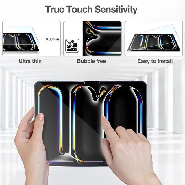 Inch (M4) 2024 (Model: A2836 A2837 A3006). Please check back bottom of your iPad to find the model number Axxxx. 2 packs of screen protector with 9H hardness surface ultra-thin super HD transparency true touch sensitivity. Smooth 2.5D rounded edge2 packs of camera lens protector with precise cutouts offer great protection. HD clarity ensures the original shooting quality and supports night shooting functionFace ID & Pencil Compatible. Scratch-resistant; Shock-resistant; Oil-resistant; Case friendly