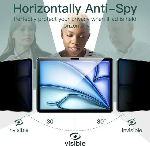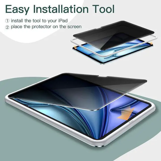 Fit iPad Model Numbers: A3266 / A3267 / A3270 / A2902 / A2903 / A2904. Please Go to Settings > General > About then tap the Model Number field to reveal the A model number[Privacy Protection] When the iPad is held horizontally the screen is only visible to persons directly in front of screen protecting your privacy from peeping by strangers. (Note that the protector will darken the screen a little for a better anti-spy effect. And you can turn up the display brightness for better viewing experience)[Easy Installation] Come with an easy installation frame. Allow perfect alignment and quickly install the screen protector without leaving any air bubbles[Premium Tempered Glass] Highly protect the screen against scratches and abrasions up to 9H (harder than a knife). Oleophobic coating keeps the screen free from fingerprints and oil[Accurate Touch Sensitivity] Ultra-thin 0.33 mm glass ensures quick and accurate response as your bare screen highly responsive to every touch and tap