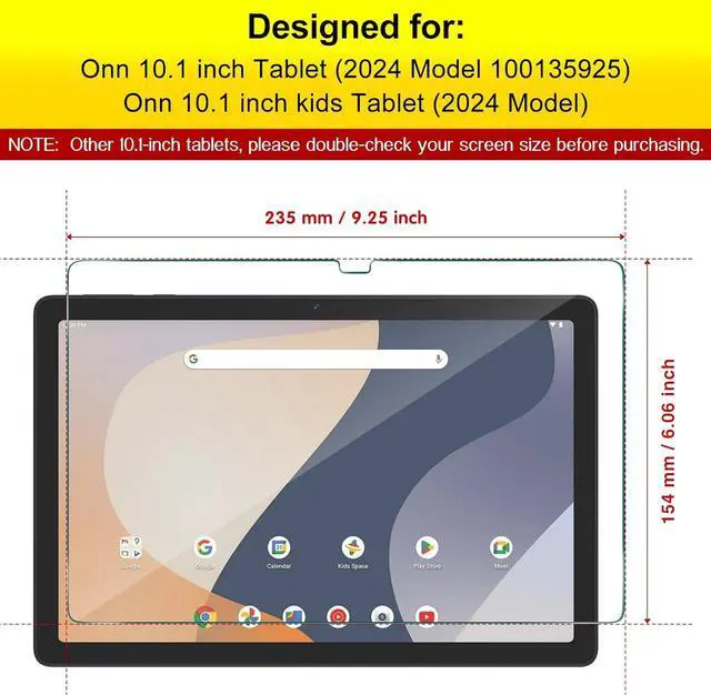 Compatibility: Screen Protector for Walmart Onn 10.1 inch Tablet (2024 Model 100135925) / Onn 10.1 inch kids Tablet (2024 Model); **NOTE** Other 10.1 -inch tablets please double-check your screen size before purchasing. Thank you.: ) -