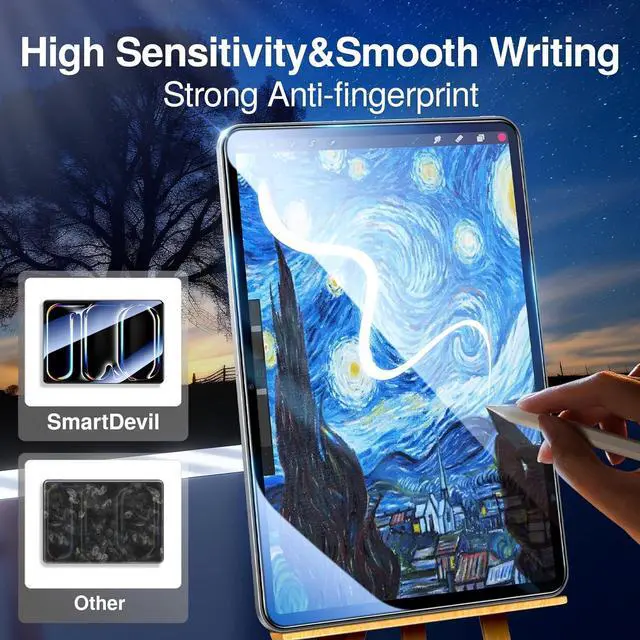 Compatibility: This ipad screen protetor only for iPad Pro 11 inch (2024/2022/2021/2020/2018 M4)Super Easy InstallationWith its groundbreaking unique electrostatic edge adsorption technology and easy operation SmartDevil tempered glass can perfectly adhere within 3 seconds and quickly exhaust to zero bubbles. Unlike other loose edges that are prone to bubble formation. Even beginners elderly people and toddlers may look like professionals. Please read the user manual and installation tutorial video carefully before installation.