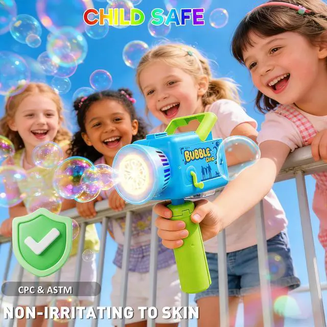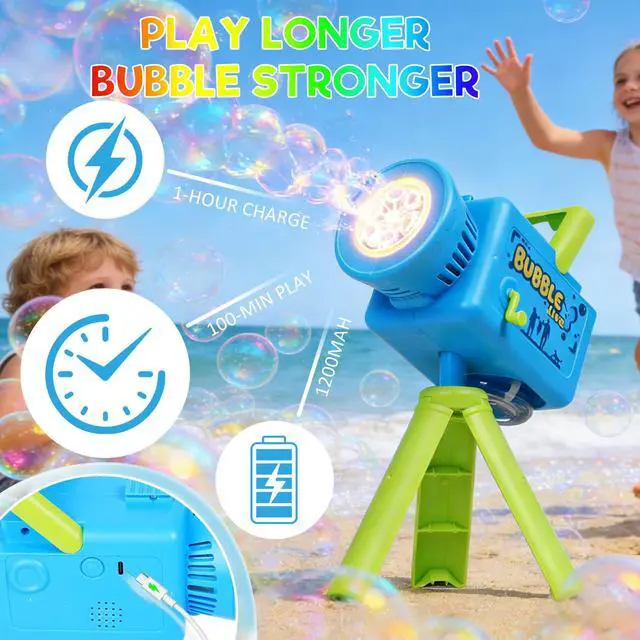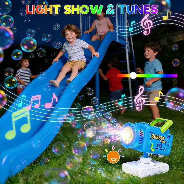 Music, Lights & Rich Bubbles: With built-in music and dynamic lights, casting a colorful glow over endless bubbles. This standout bubble machine for kids elevates evening parties, bedtime play, and even bubbles for wedding celebrations