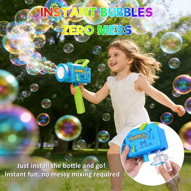 Complete All-In-One Gift KitPackage includes: 1 bubble machine, 1 bubble solution (80ml) ×2, USB charging cable, user manual. Everything you need to start the bubble fun right out of the box, making it an ideal bubble toys for toddlers 1-3 and great gift for birthdays