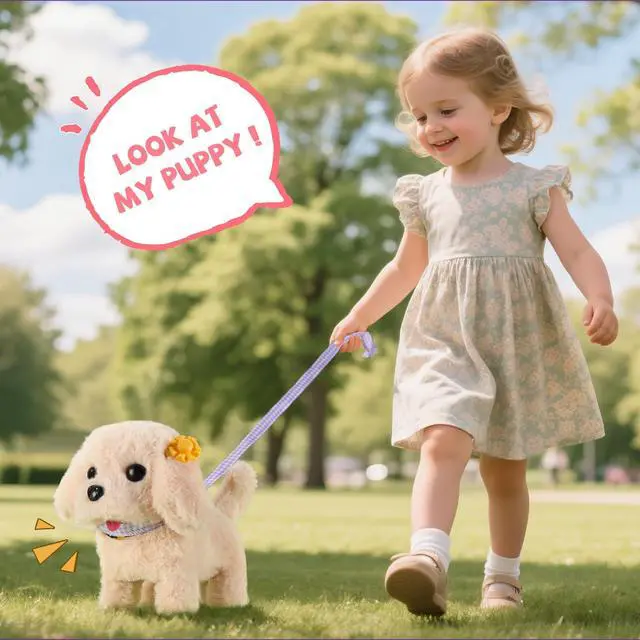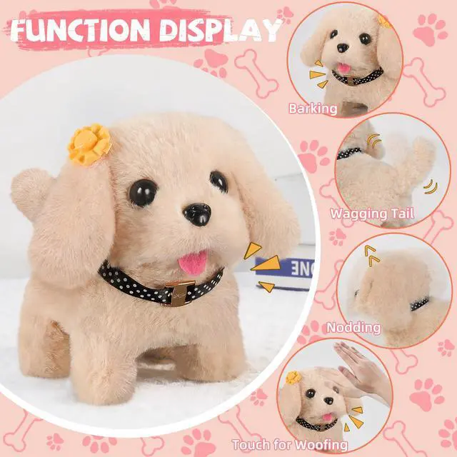Interactive Dogs that Walk and Bark: Just put in the battery and turn on the power, and the cute electric plush animal dog will walk, bark, wag its tail, and nod like a real dog. And when you pat it on the head, it will also make a cute and interesting sound. By taking care of puppies, children can experience various pet activities, such as feeding, bathing, combing and trimming fur, thereby learning life skills and even overcoming their fear of dogs in life. Great realistic robot puppy toys for kids girls boys