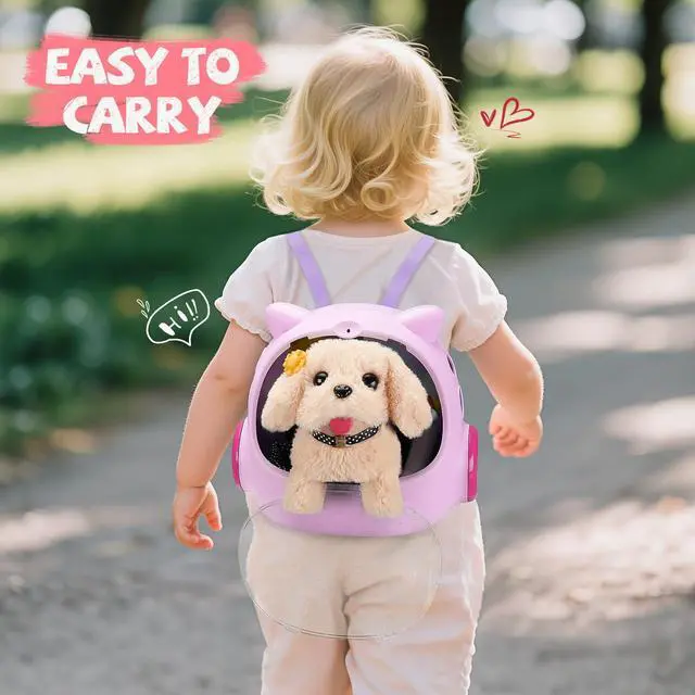 Easy To Carry & Outdoor Play: Compared to other robot puppy toys, the backpack we provide is easier to carry. You can put your dog in your backpack and carry it with you during outdoor picnics or travel. At the same time, we also have a dog leash that can be put on a dog's collar and will automatically walk with the cute dog's bark, allowing children to simulate the scene of walking the dog. It's so fun! Ideals 3 4 5 6 year old girl kids birthday gifts