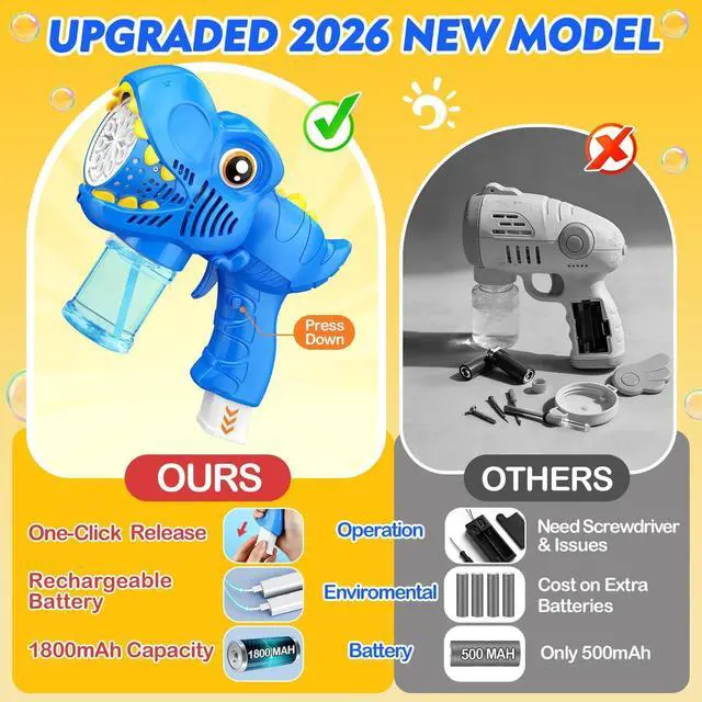 Who doesn't like bubble fun? Have fun day with kids! Our bubble guns make tons of bubbles and very easy to use. Perfect Gift for kids.
