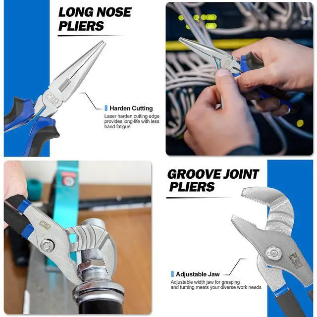 | Pliers | 6" Combination Pliers, 6" Long Nose Pliers, 8" Pump Pliers |