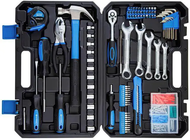 180-Piece Socket Wrench Auto Repair Tool Combination Package Mixed Tool Set Hand Tool Kit with Plastic Toolbox Storage Case Blue