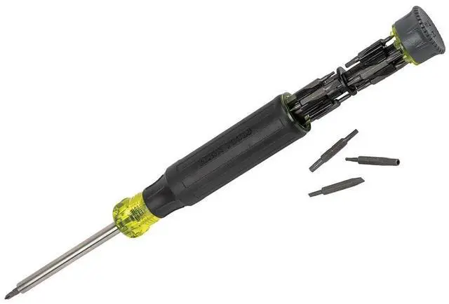 The 27-in-1 Multi-Bit Precision Screwdriver offers 26 specialty tamperproof tips conveniently stored in the handle plus an integrated 3.5 mm nut driver. The powerful Rare-Earth magnet in the stainless steel barrel securely holds both bits and fasteners. This screwdriver features industrial-strength bits as well as a Cushion-Grip handle with spin cap for outstanding comfort and control.