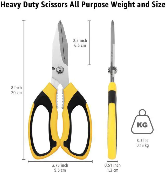Utility heavy duty scissors measure 8 inches and weigh 0.3 pounds