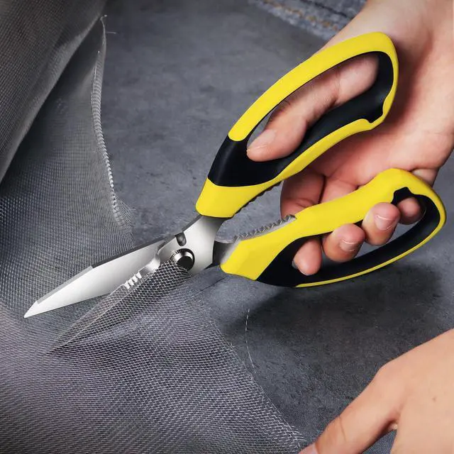 The utility shears heavy duty handles are made of PP and TPR soft materials, providing a comfortable grip, reducing hand strain and making them suitable for long cutting sessions.