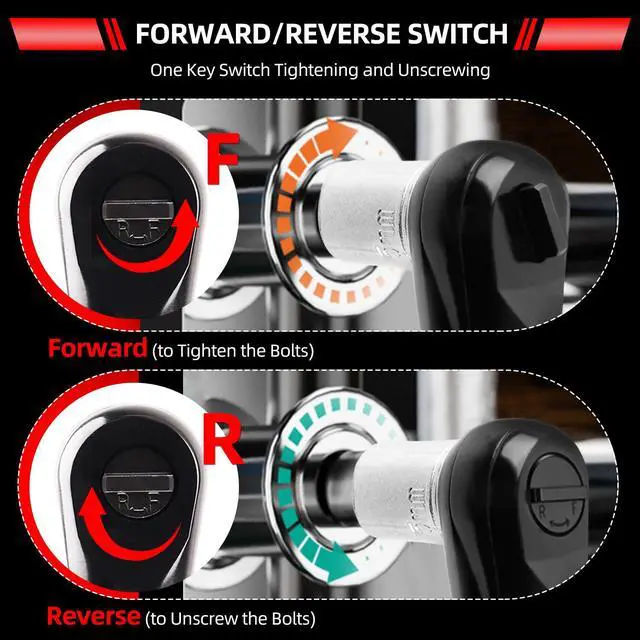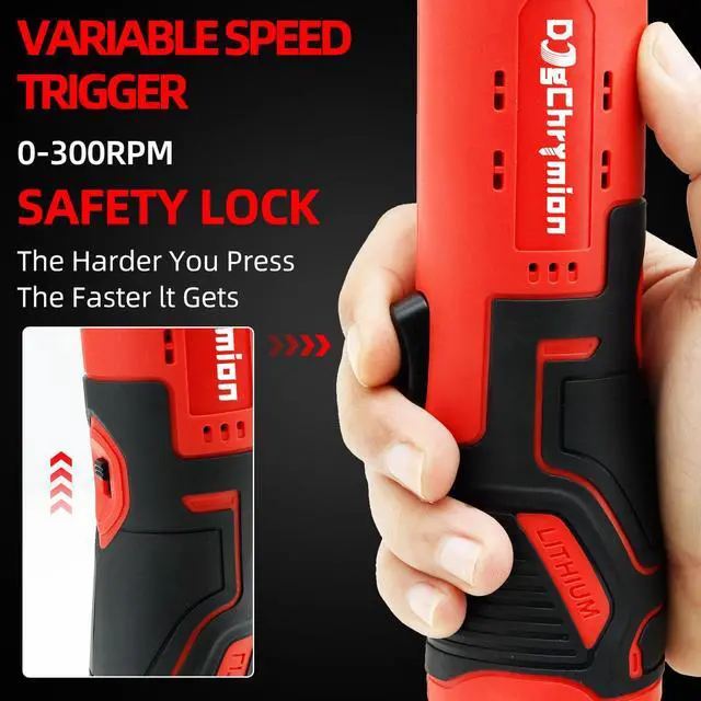 Intuitive Directional Operation: Rotate rear knob for forward/reverse; Squeeze trigger for variable speed (0-300 RPM) - no complex settings