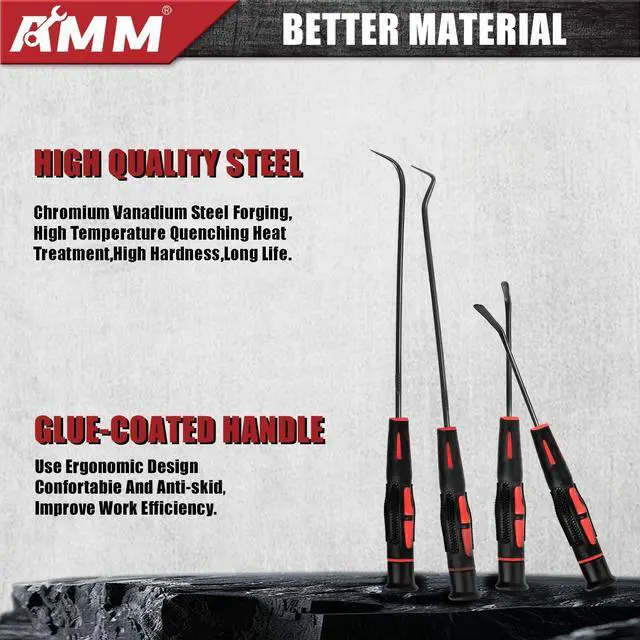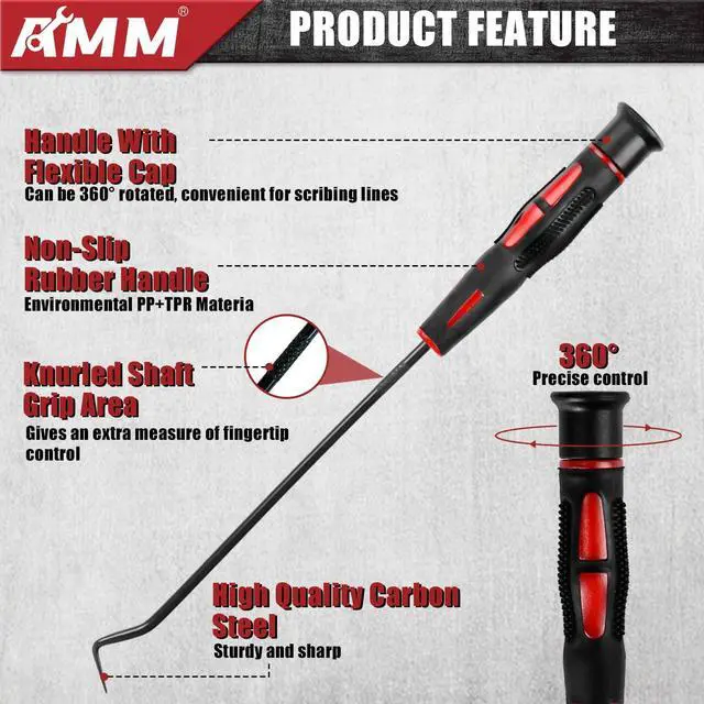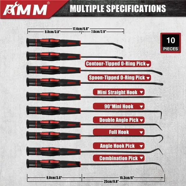 This pick and hook set can be conveniently used for ignition system, intake valve, rifle bolt surface, seals, fuel valve O-ring, hose end O-ring and various electronic equipment.