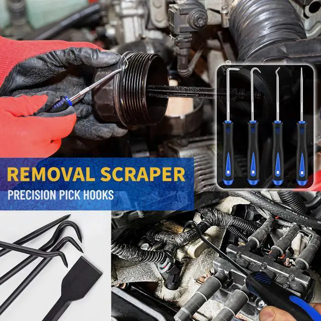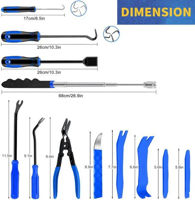 18 Pcs Precision Pick and Hooks Set, Trim Removal Tool Kit with Scraper Telescoping Magnetic Pickup Tool Panel Clip Plier Fastener Remover, Metal Plastic Trim Tools, Automotive Mechanic Bag, Blue