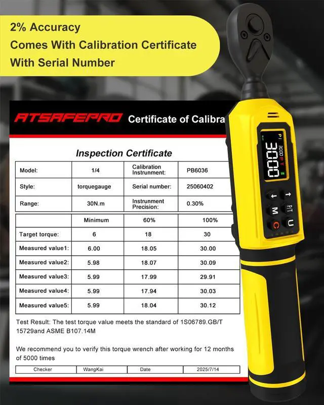2. ±2% High Accuracy with Multiple Alerts: Achieve professional-grade precision with ±2% accuracy.The 1/4 torque wrench has built-in vibration, loud buzzer, and bright LED flash notify you instantly when target torque is reachedsuitable for noisy workshops or focused DIY projects.