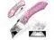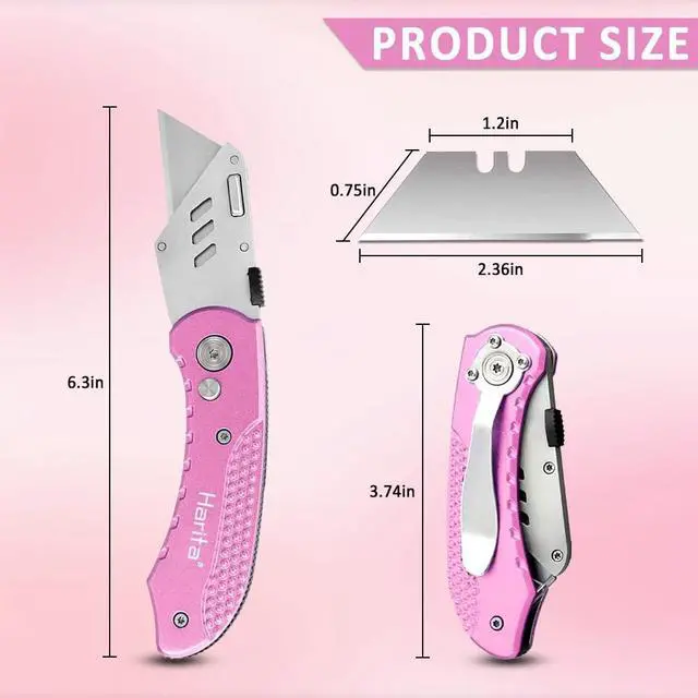 Box Cutter Retractable, Folding Utility Knife with Aluminum Handle, Heavy Duty Knife, Back-lock Mechanism, Stainless Belt Clip, for Carpet, Carton, Box, Cardboard, with 5-piece Extra Blades (Pink)