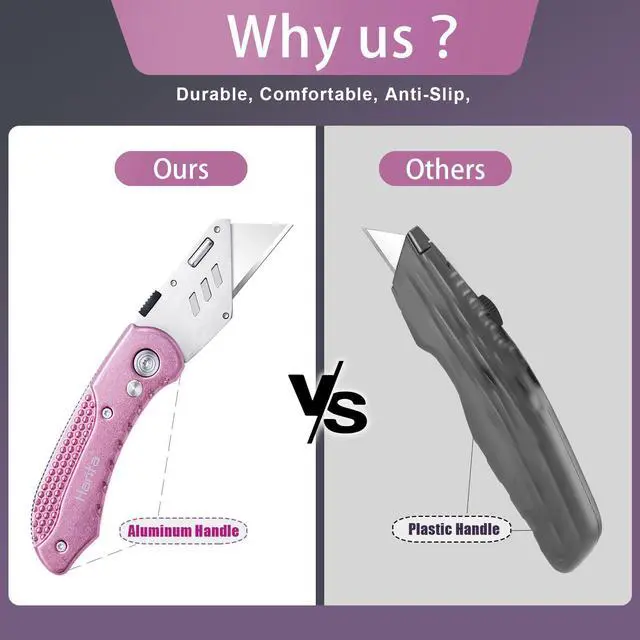 Stay Safe: Our carpet knife has an anti-slip handle and button to ensure safe use in any scenario. Plus, the lightweight aluminum body comes with a pocket clip for easy carrying