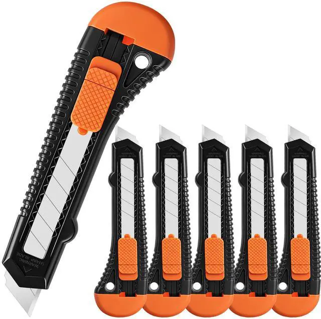 Pack of 6 Exceptional Durability & Sharpness: Our premium box cutter features a high-carbon steel blade, guaranteeing long-lasting durability and razor-sharp performance.