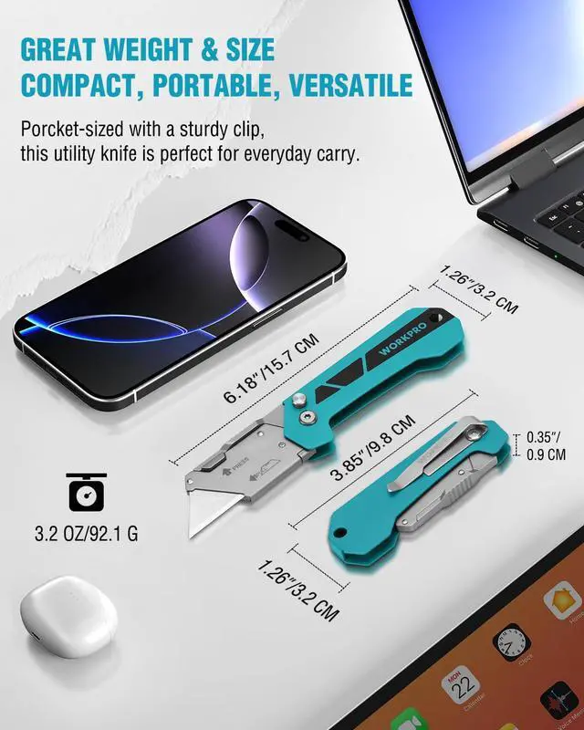 [Compact & Lightweight] The EDC folding utility knife weighs 3.2 oz and measures 3.85" when closed, making it smaller and lighter than most. Its compact design fits easily in a pocket, pouch, or bag, making it perfect for everyday carry