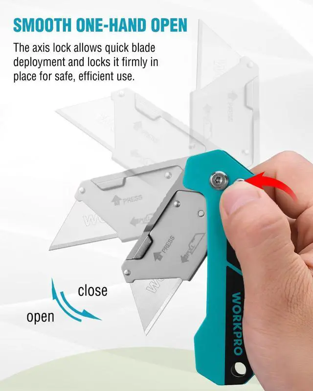 [Smooth One-Hand Open] The axis lock mechanism of the razor knife allows for one-handed operation and ensures the blade remains securely locked during use, enhancing both safety and work efficiency