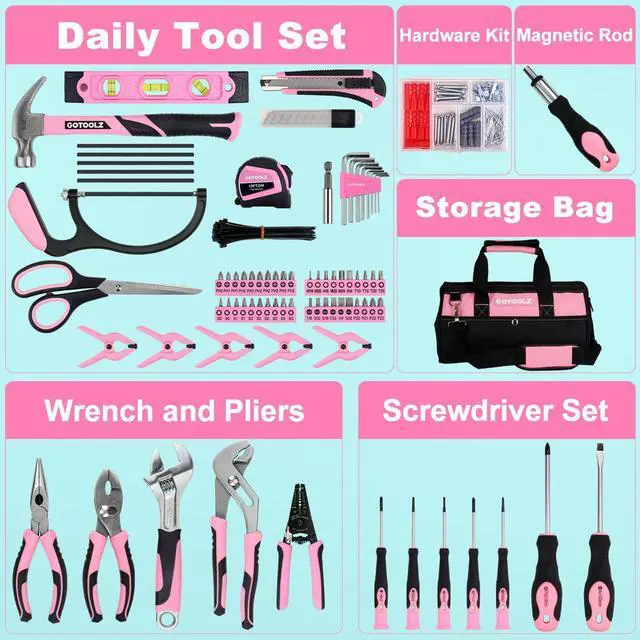 269-Piece Home Tool Set, General Household Repairing Tool Kit with Storage Bag, Basic Hand Tool Kit Set for Home Maintenance, DIY and Crafts (Pink)