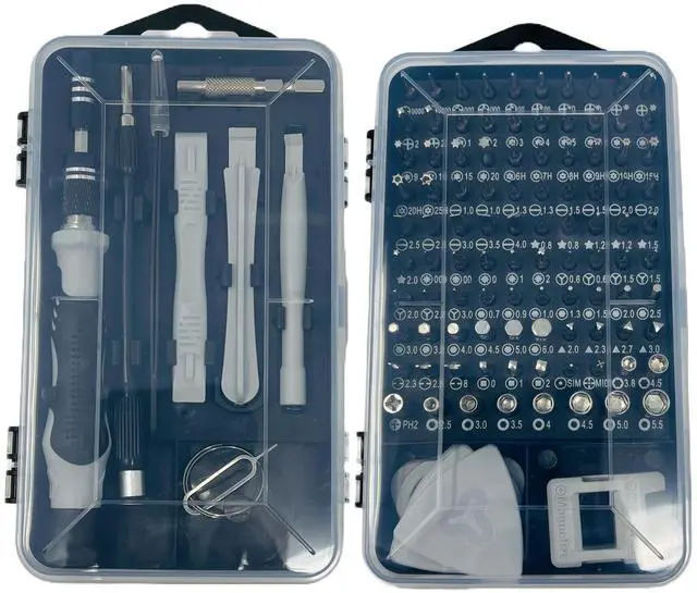 Our117 in 1 Precision Kit with Micro Screwdriver Set and Storage Case, a household essential, has an impressive collection of tools for any electronic repairs. Explore a range of Phillips, Flat, Torx, Torx Security, Pentalobe, Hexagon, and more, alongside an array of opening tools. This complete set makes sure that you are equipped with the most diverse, versatile and complete repair kit for any project.