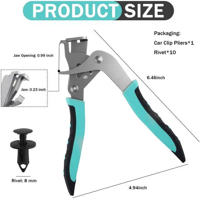 • Multi-functional: Our car clip remover tool is a multi-functional tool with the jaws to effectively deal with common fasteners on vehicles, whether it be rivets or car snaps, and it comes with 10 pieces of 8 mm plastic rivets in the package