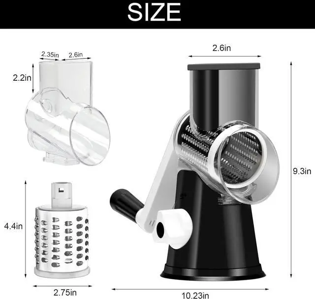 Suitable for shredding Cheese, zucchini, carrot, potato, cucumber or nuts and cookie.