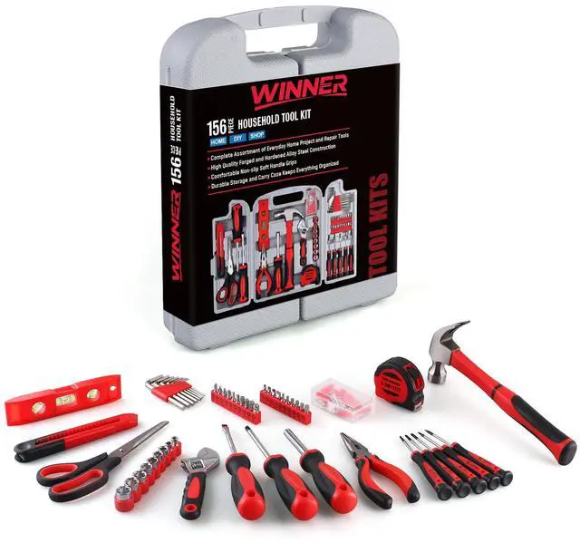WINNER 156-Piece Delicate All-Purpose Home Tool Kit in Foldable Toolbox, Unis...