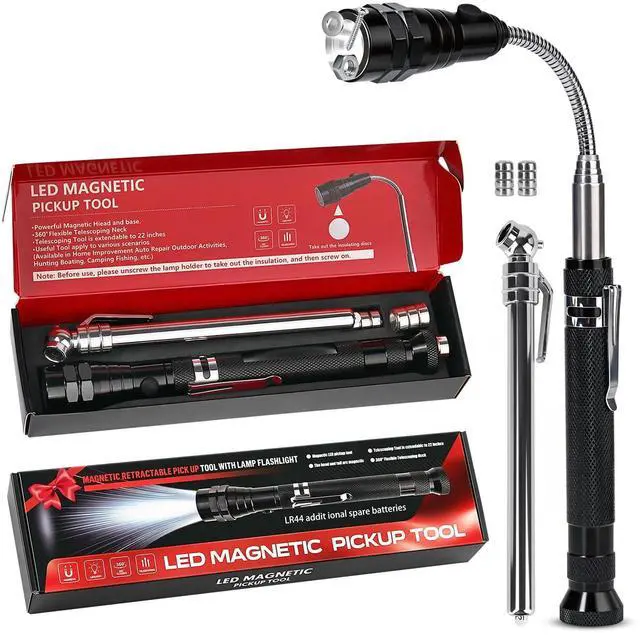 Magnetic Pickup Tool with LED Flashlight, Telescoping Magnet Tool, Cool Gadget Gift for Men, Dad, Husband, Mechanic & Handyman