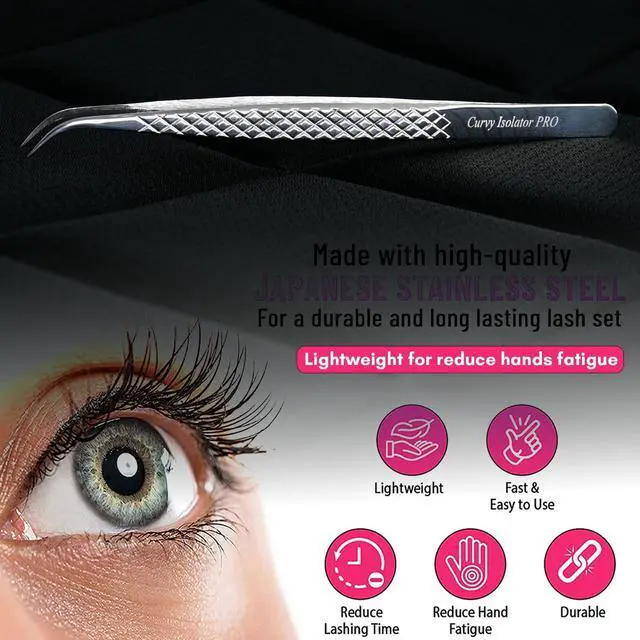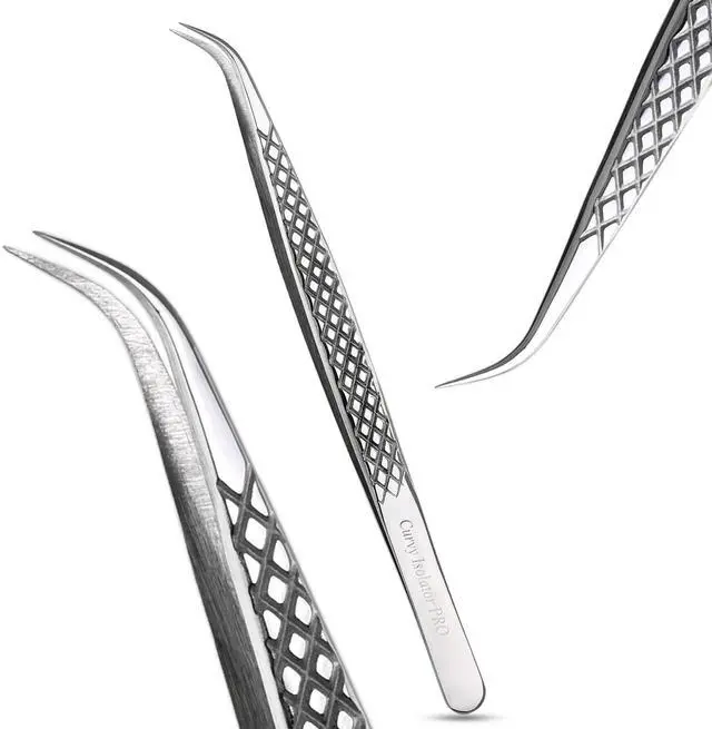 Engineered for professional lash artists, this 14 cm curved isolation tweezer delivers clean separation and precise placement for Classic, Hybrid and Volume sets. The finely tapered curved tip glides between natural lashes to prevent stickies, while the diamond-textured handle provides a confident, anti-slip hold throughout long services.