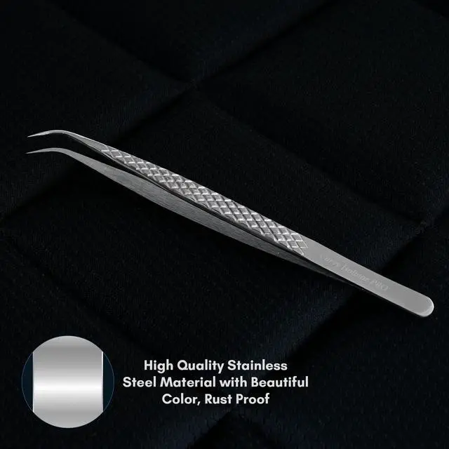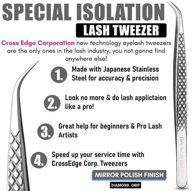 CrossEdge Corporation Curved Isolation Tweezer 14 cm (Diamond Grip, Silver Polish)