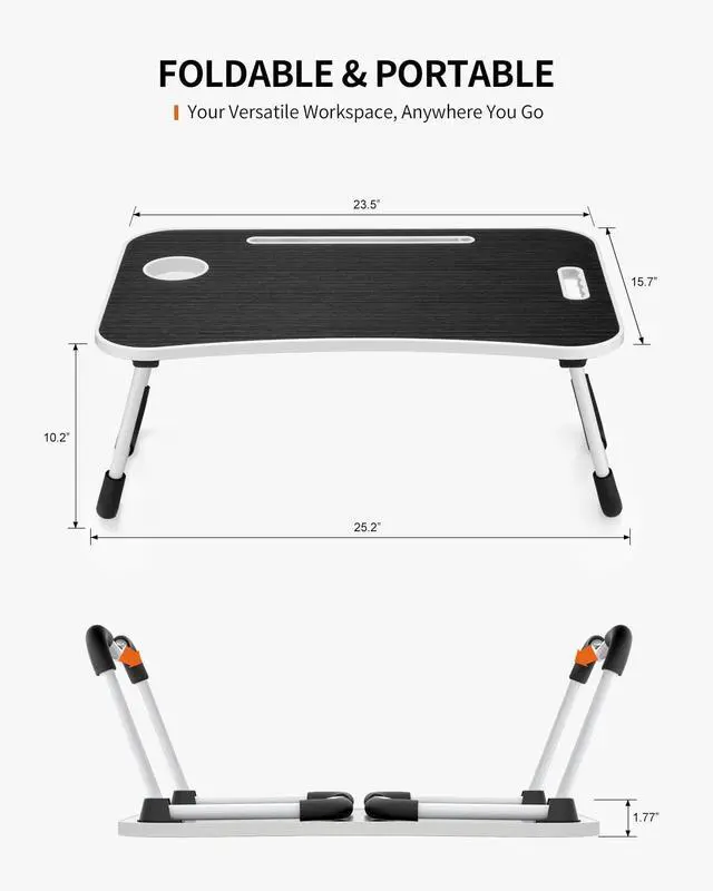 Foldable Laptop Table, Portable Lap Desk Bed Table Tray, Laptop Stand with Cup Holder & Tablet Slot & Lifting Handle for Working Writing Drawing & Eating (Black)