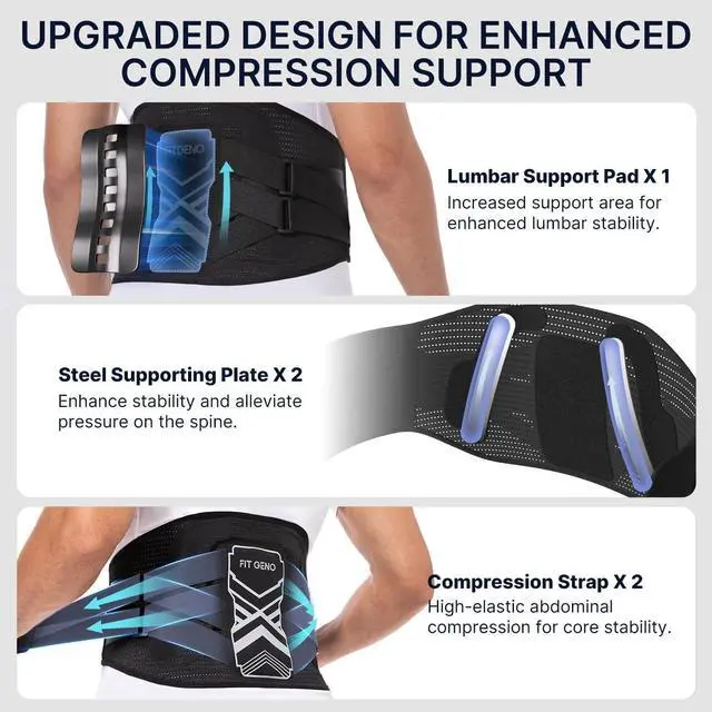 Advanced Lower Back Support for Men and Women: Fit Geno lower back brace for Man provides sturdy support with durable, elastic materials, offering all-day wear that provides long-lasting comfort and reduces the risk of injury