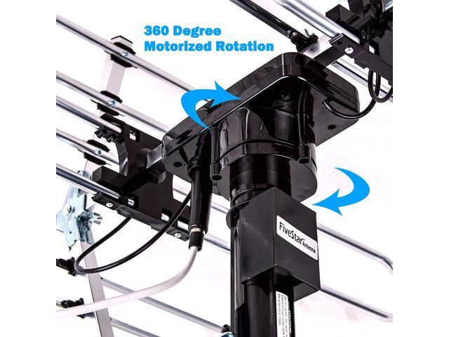 Five Star [Newest 2020] Outdoor Antenna Digital Amplified HDTV w/ up to 200-Mile Long Range,360 Degree Directional Rotation, Water/UV Resistant, Supports 2 TVs and can up to 5 TVs if add a splitter.