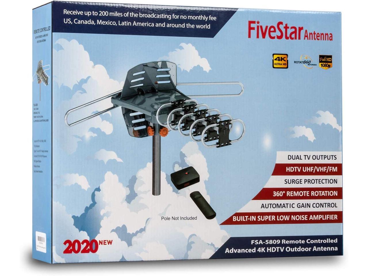 FiveStar [Newest 2020] HDTV Antenna Amplified Digital Outdoor Antenna 150 Miles Range, 360 Degree Rotation Wireless Remote, with 40FT RG6 Coax Cable Installation Kit and Mounting Pole 5 TVs