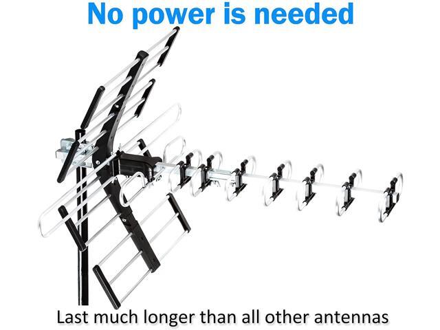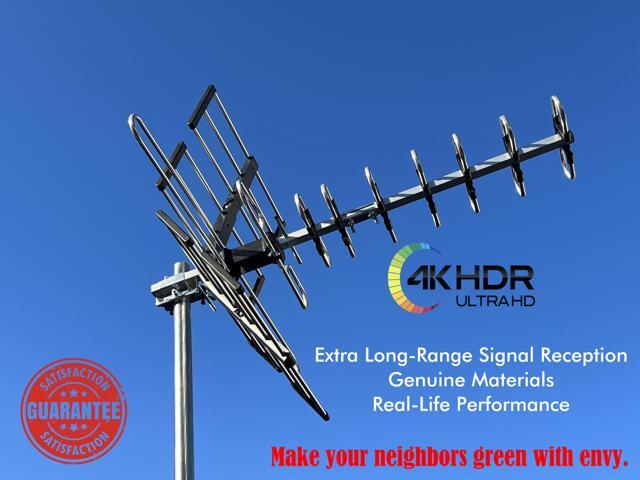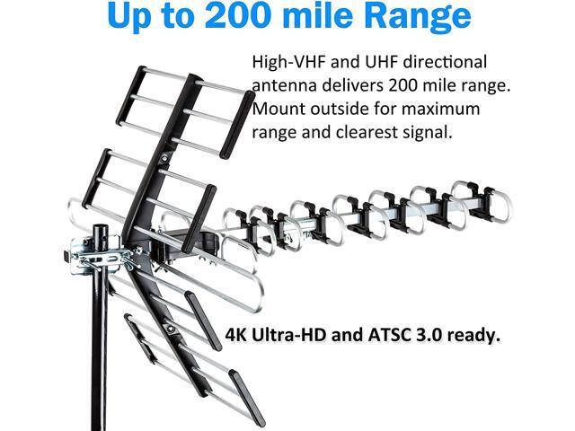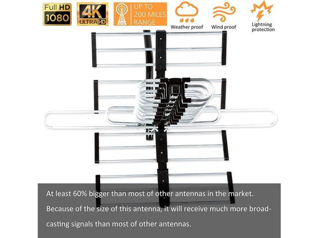 - [2021 NEW MULTI-DIRECTIONAL OUTDOOR ANTENNA] Receive 1080p and 4K reception up to 200 miles from the TV Transmitters, our outdoor TV antenna has superior reception for both VHF and UHF signals. Cut the expensive cable or satellite bill with this powerful antenna, you can save tons of money.