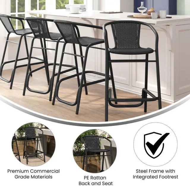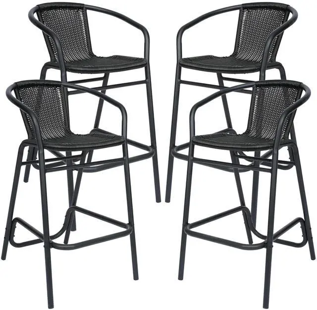 • Brand: Flash Furniture • Item Name: Flash Furniture Lila Commercial Grade Rattan Indoor-Outdoor Commercial Restaurant Barstool - Rattan Seat and Back - Footrest - Black - 4 Pack • Unit Count Type: Count • Unit Count Value: 4 • Part Number: 4-SDA-AD632032R-BK-GG • Manufacturer: Flash Furniture • Model Number: 4-SDA-AD632032R-BK-GG • Item Package Weight: 72 pounds • Item Package Dimensions: 40 L x 23 W x 23 H inches • Back Style: Slat Back • Seat Depth: 14.5 inches • Seat Material Type: Rattan • Size: Set of 4 • Color: Black • Frame Material: Aluminum • Scent: Unscented • Style: Contemporary • Pattern: Solid • Material 0: Aluminum • Material 1: Rattan • Item Shape: Square • Model Name: Flash Furniture • Skip Offer: true • Fabric Type: Aluminum, Rattan • Finish Type: Powder Coated, Unfinished • Is Foldable: false • Item Weight: 72.00 pounds • Street Date: 2024-08-01T00:00:01Z • Unspsc Code: 56000000 • Gift Options Can Be Wrapped: false • Gift Options Can Be Messaged: false • Fill Material: Foam • Package Level: unit • Condition Type: new_new • Ships Globally: true • Is Customizable: false • Item Dimensions: 22 L x 22 W x 39.25 H inches • Number Of Items: 4 • Special Feature: Rattan Seat and Back • Furniture Finish: Aluminum • Product Tax Code: A_GEN_TAX • Care Instructions: W-Water based cleaner • Batteries Included: false • Batteries Required: false • Included Components: Metal Patio Barstools • Item Display Weight: 60 pounds • Chair Backrest Width: 12 inches • Is Assembly Required: true • Assembly Instructions: DIY • Item Package Quantity: 1 • Surface Recommendation: Hard Floor • Item Depth Width Height Depth: 22 inches • Item Depth Width Height Width: 22 inches • Item Depth Width Height Height: 39.25 inches • Item Display Dimensions: 22 L x 22 W x 39.25 H inches • Merchant Shipping Group: c32c28a1-9548-464f-83a2-66ec99f54a1c • Fulfillment Availability Quantity: 0 • Fulfillment Availability Fulfillment Channel Code: DEFAULT • Fulfillment Availability Lead Time To S